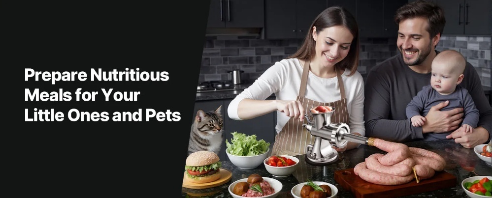 Manuālā gaļas maļamā mašīna, kas ideāli piemērota mājās gatavotu desu un burgeru pagatavošanai
