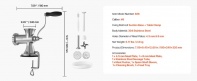 Divkāršas drošas fiksācijas metodes: Šī ar roku vadāmā gaļas maļamā mašīna ir aprīkota ar divām uzticamām fiksācijas metodēm: apakšējo izturīgo piesūcekni un 304 nerūsējošā tērauda galda skavu. Divkāršās drošās fiksācijas nodrošina mašīnas stabilitāti un stingru novietojumu, novēršot jebkādas bažas par drebēšanu vai kritienu lietošanas laikā. Tērauda skavas atvēruma diapazons ir 0,79–1,97 collas (20–50 mm), kas ir piemērots lielākajai daļai galda virsmu ar visdažādākajiem biezumiem.