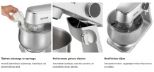 Pilnīgs maisīšanas risinājums: Gatavs jebkuram darbam virtuvē! Mūsu stacionārajam mikserim ir 3 profesionāli maisīšanas piederumi: mīklas āķis smagas mīklas mīcīšanai, putotājs kartupeļu biezeņa vai salātu maisīšanai un putotājs viegliem maisījumiem, piemēram, putukrējumam vai olu baltumiem.