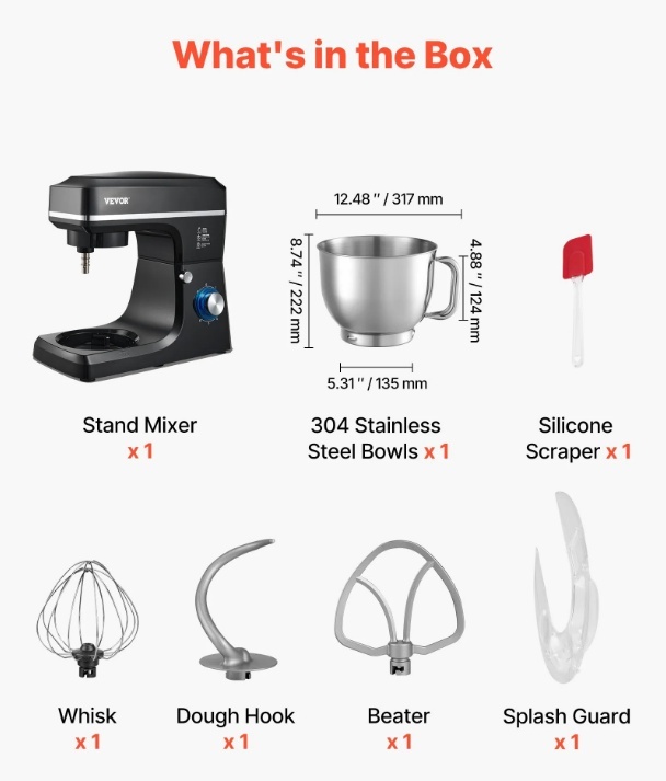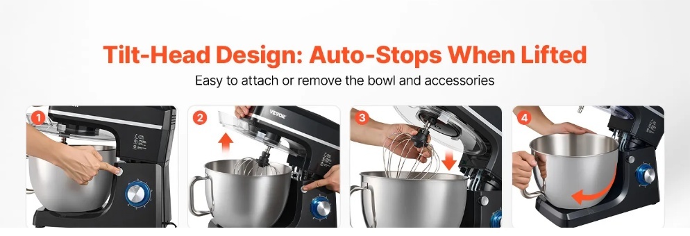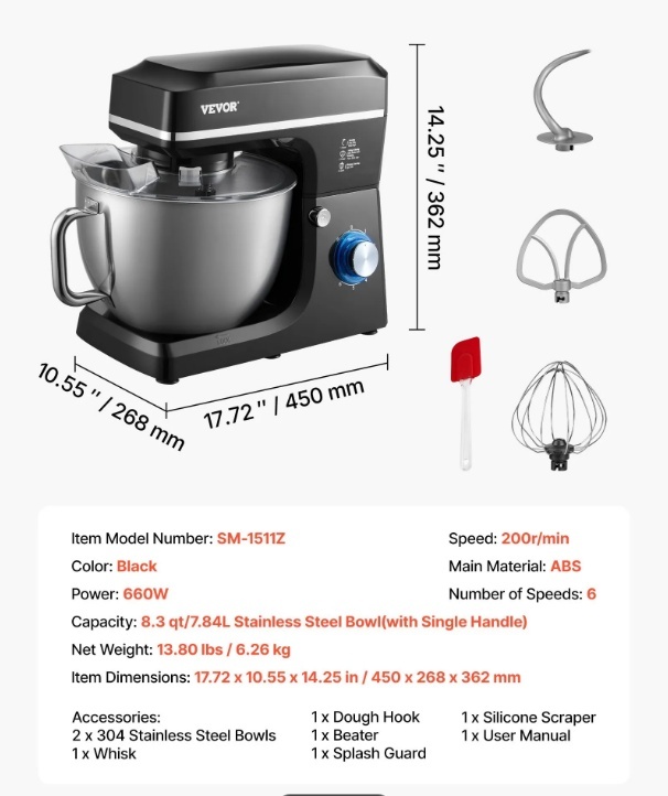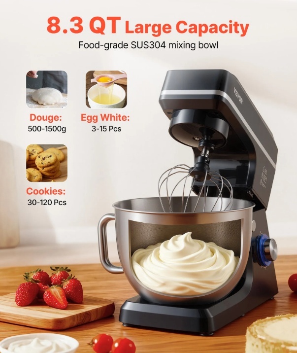 VEVOR stacionārais mikseris , 8.3QT mīklas mikseris, 1400W 6+P ātrumi,