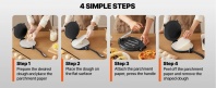 Vienkārši lietojams: Gatavs lietošanai uzreiz pēc izņemšanas no kastes, bez nepieciešamības to salikt. Šo tortiljveida presi ir vienkārši lietot, un mīklu var pagatavot tikai 4 soļos. Komplektā ietilpst papildu 100 cepamā papīra loksnes — vienkārši ievietojiet divas loksnes starp mīklu, un to ir viegli noņemt.