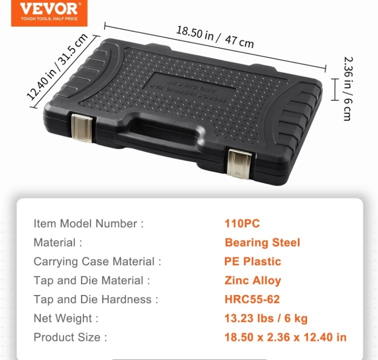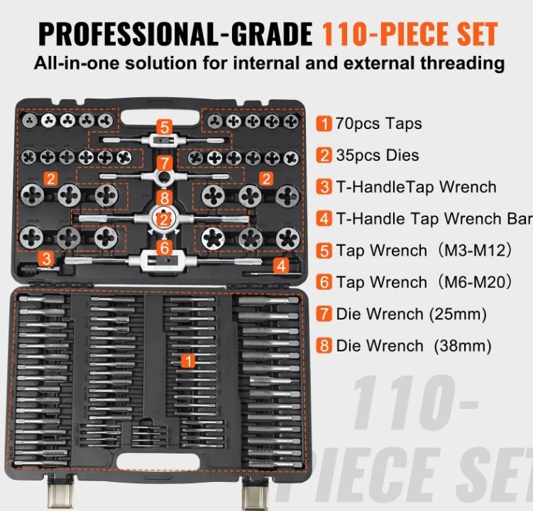 VEVOR vītņgriežu komplekts , 110 daļas ar metrisko vītni no M2 līdz M18