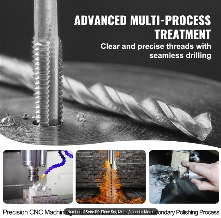 Izcila meistarība: Katrs vītņgriezis un vītņgriezis tiek rūpīgi apstrādāts ar CNC, termiski apstrādāts 800 ℃ temperatūrā un veikts dubults pulēšanas process, lai nodrošinātu nepārspējamu precizitāti un izturību. Otrreizējā pulēšana nodrošina īpaši gludu virsmu, samazinot berzi un nodilumu, vienlaikus uzlabojot estētiku un asumu.