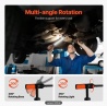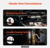 Bezvadu lietošanas ērtības: Šai mehāniskajai gaismas joslai ir spēcīga magnētiska pamatne, kas ļauj to piestiprināt pie zem pārsegiem vai magnētiskām metāla virsmām (izņemot alumīniju). Lai ērti izmantotu bezvada ierīces, gaismu var arī pakārt pie āķiem, virvēm vai ķēdēm virs darba vietas. Daudzleņķu rotācija: Darba apgaismojumam zem motora pārsega ir 300° rotējoša pamatne un 350° rotējošs korpuss, kas ļauj viegli pielāgot gaismas leņķi pēc nepieciešamības. Nav nepieciešama bieža pārvietošana, tāpēc to ir viegli apgaismot tādās vietās kā zem automašīnas vai motora nodalījumā.