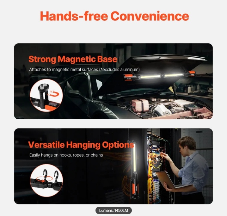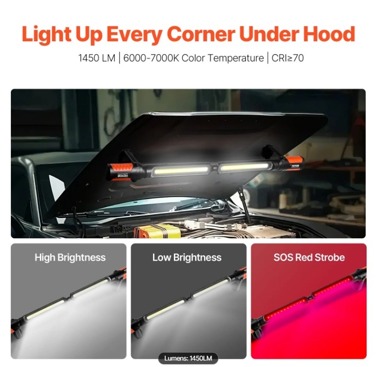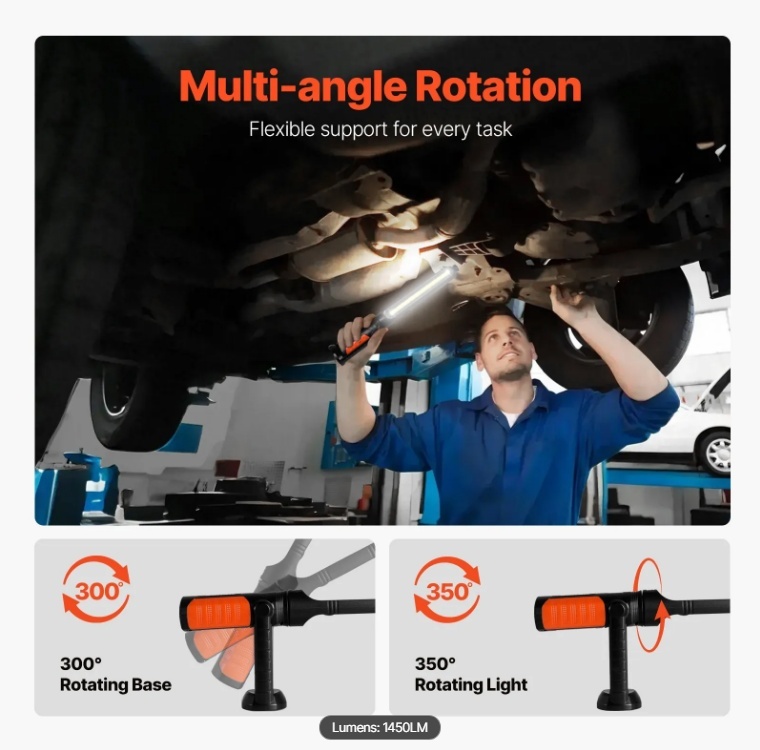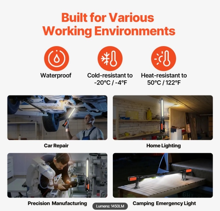 VEVOR servisa darba apgaismojums, 1450LM , 4400mAh , uzlādējams