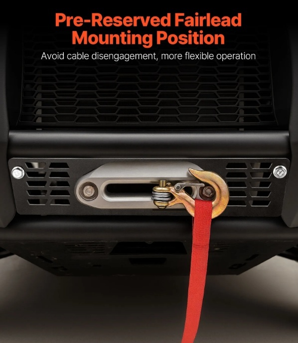 Virzošā āķa stiprinājums: Vinčas uztvērēja āķa stiprinājuma iepriekš uzstādītais virzošais āķis nodrošina vienmērīgu troses vadīšanu, samazinot berzi un nodilumu. Tas ļauj trosi atbrīvot vai ievilkt pa noteiktu ceļu, uzlabojot drošību un efektivitāti lietošanas laikā.