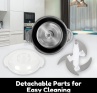 Noņemamas daļas vienkāršai tīrīšanai – Kombaina noņemamās daļas padara tīrīšanu pavisam vienkāršu. Vienkārši noņemiet bļodu, asmeņus un vāku, lai veiktu ātru un rūpīgu skalošanu, nodrošinot, ka visas vietas ir viegli pieejamas.