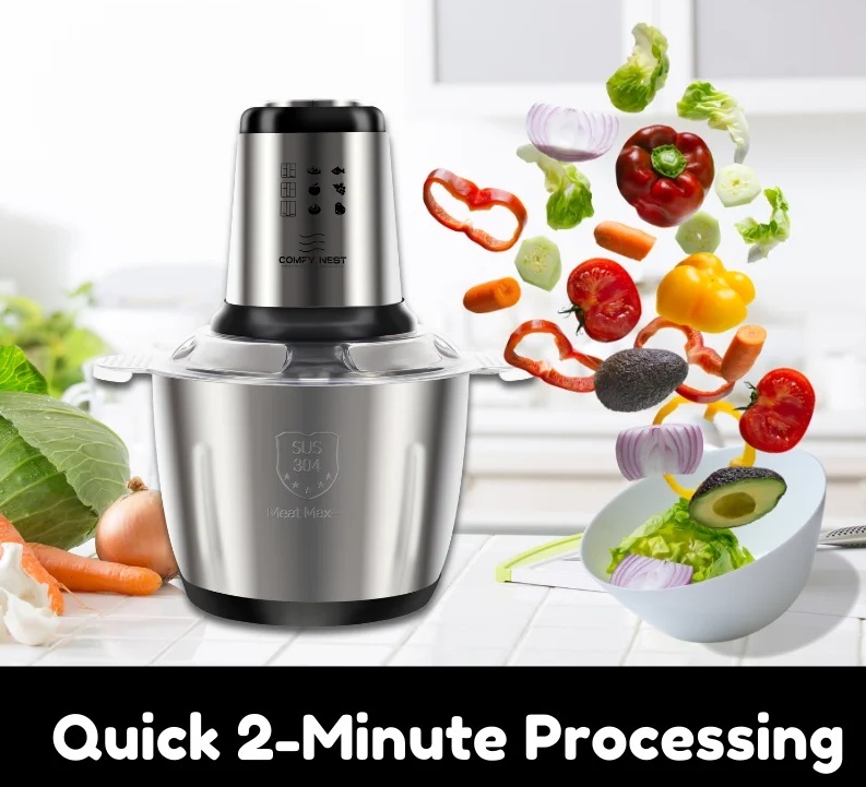 Ātra 2 minūšu apstrāde – Paātriniet ēdiena gatavošanu ar šo kombainu, kas ļauj apstrādāt tādas sastāvdaļas kā pildījumus un sasmalcinātus dārzeņus tikai 2 minūtēs, kas ir ideāli piemērots ātrai un efektīvai ēdiena gatavošanai.