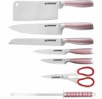 Iekļautas virtuves šķēres un asināšanas tērauds – komplektā ietilpst arī daudzfunkcionālas virtuves šķēres, kas ir noderīgas dažādiem uzdevumiem, sākot no garšaugu griešanas līdz gaļas apgriešanai. Asināšanas tērauds palīdz uzturēt jūsu nažus labākajā stāvoklī, uzasinot asmeņus un nodrošinot, ka tie ilgāk saglabā savu asumiņu.