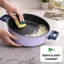 24 cm cepšanas panna ikdienas cepšanai – daudzpusīgs pannas izmērs, kas piemērots olām, pankūkām, dārzeņiem un pannā apceptai gaļai. Tās nepiedegošais marmora pārklājums uzlabo apbrūnināšanas kontroli, vienlaikus samazinot pielipšanu un eļļas patēriņu.