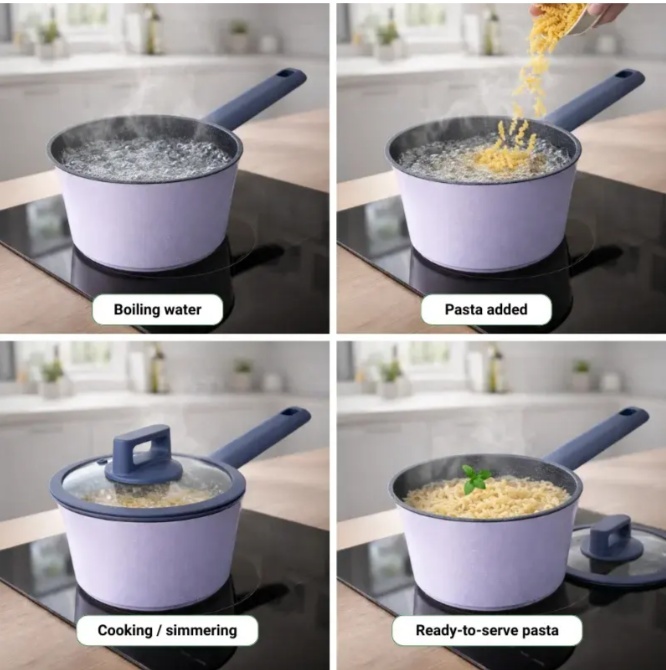 24 cm katls ar vāku ģimenes ēdienu gatavošanai – ideāli piemērots zupām, sautējumiem, makaronu ēdieniem un ikdienas ēdienu gatavošanai ar sabalansētu izmēru mājsaimniecībām. Noslēgtais vāks uzlabo vārīšanos un mitruma kontroli, lai nodrošinātu vienmērīgus gatavošanas rezultātus.