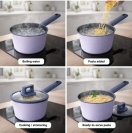 18 cm katliņš ar vāku precīzai uzsildīšanai – ideāli piemērots mērcēm, ēdienu atkārtotai uzsildīšanai, olu vārīšanai vai piena un ūdens uzsildīšanai. Kompaktais izmērs padara to par neaizstājamu ikdienas katlu ātrai un kontrolētai ēdiena gatavošanai. Iekļauts 18 cm cepšanas grozs — nodrošina praktisku vērtību ceptu ēdienu notecināšanai, vārītu sastāvdaļu pacelšanai vai mazu cepamo porciju drošai apstrādei. Spēcīga mazumtirdzniecības priekšrocība, kas palielina funkcionalitāti bez papildu piederumu iegādes.