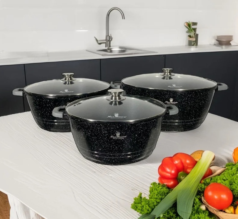 Neumann NM-3BMZ: 12 daļu katlu komplekts ar mabelu pārklātu pārklājumu - 32/36/40 cm