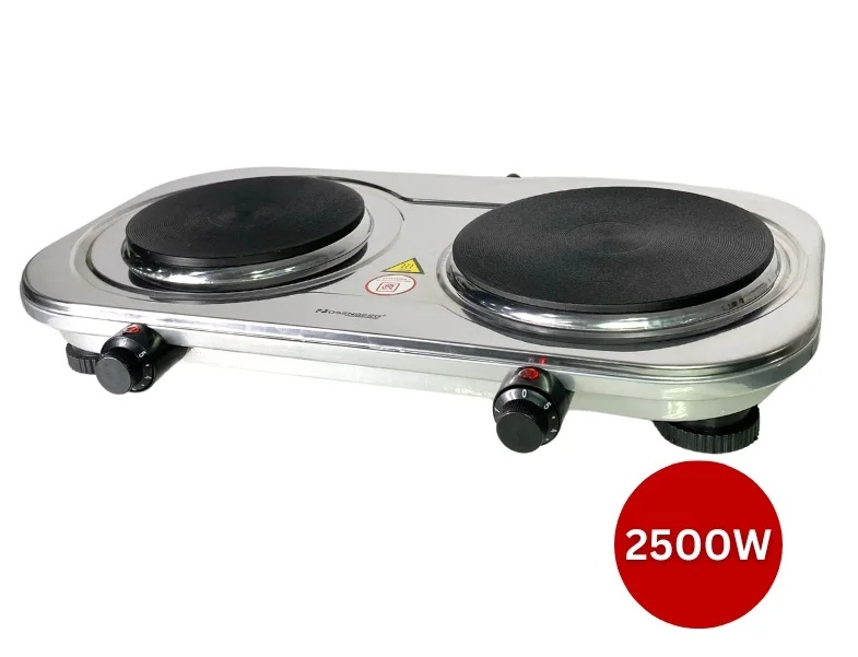 2500 W kombinētā jauda – Šīs dubultās elektriskās plīts virsmas kopējā jauda ir 2500 W, kas sadalīta starp abām sildīšanas plāksnēm, nodrošinot ātru un efektīvu uzsildīšanu. Tās jaudīgā veiktspēja ļauj veikt dažādus gatavošanas uzdevumus, piemēram, vārīšanu, cepšanu vai lēnu vārīšanu, samazinot gatavošanas laiku un padarot ēdienu gatavošanu ātrāku un ērtāku.