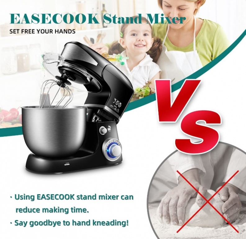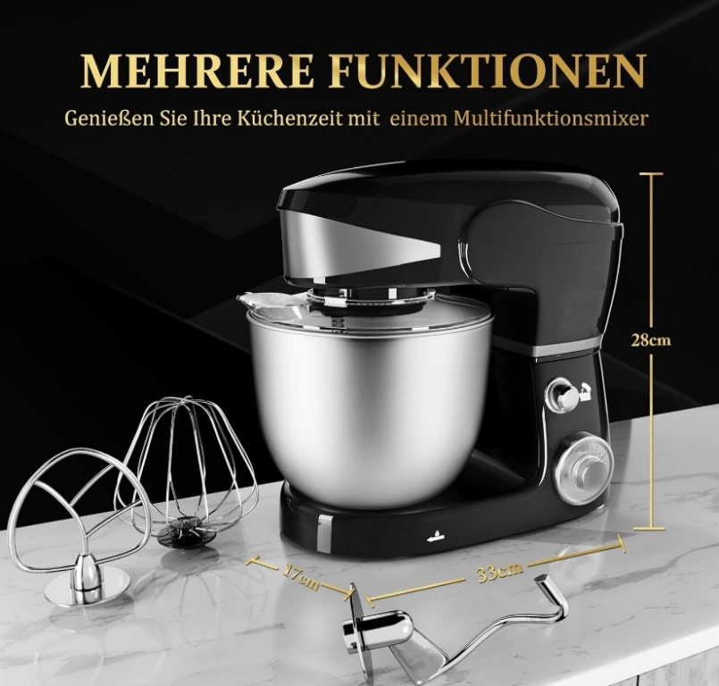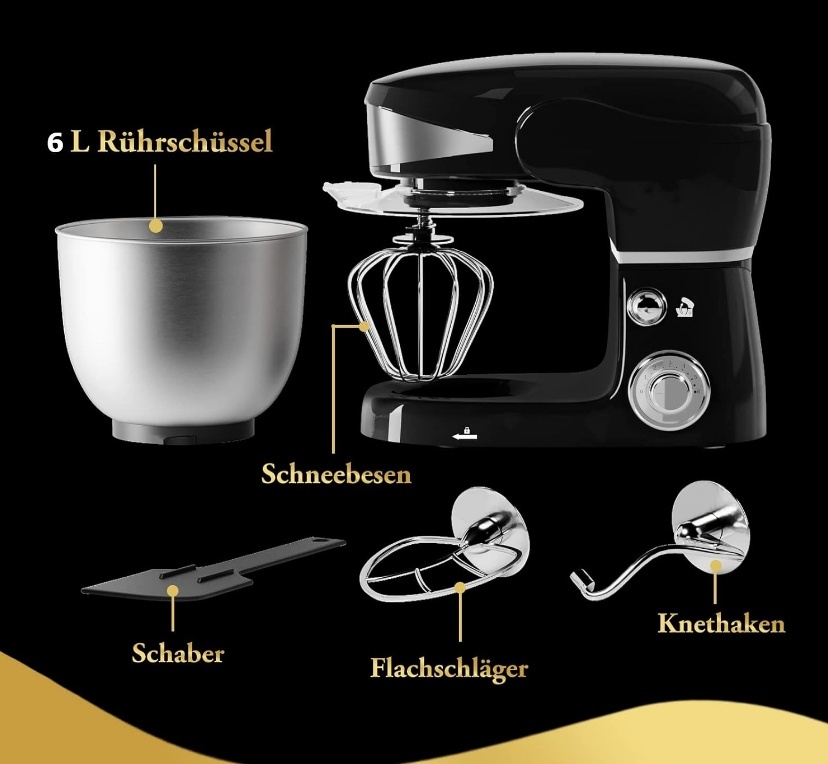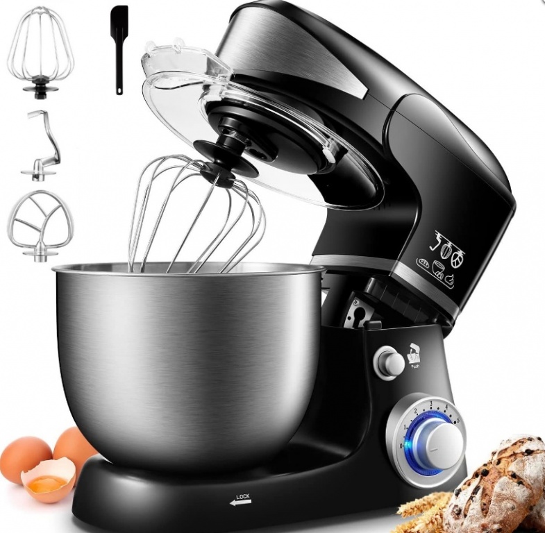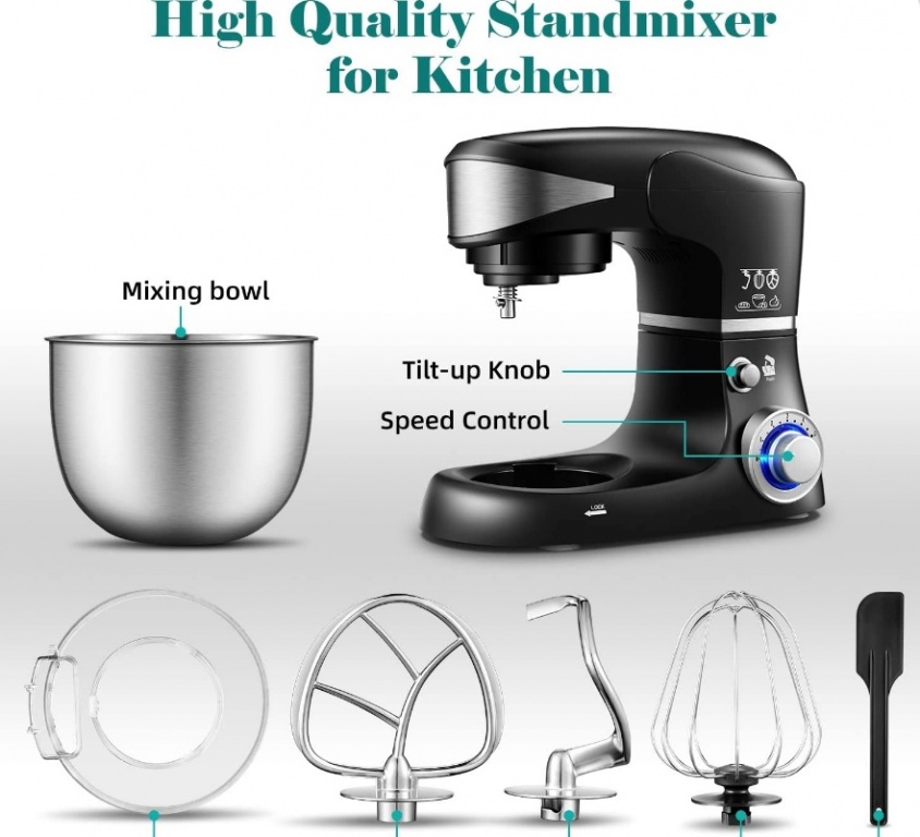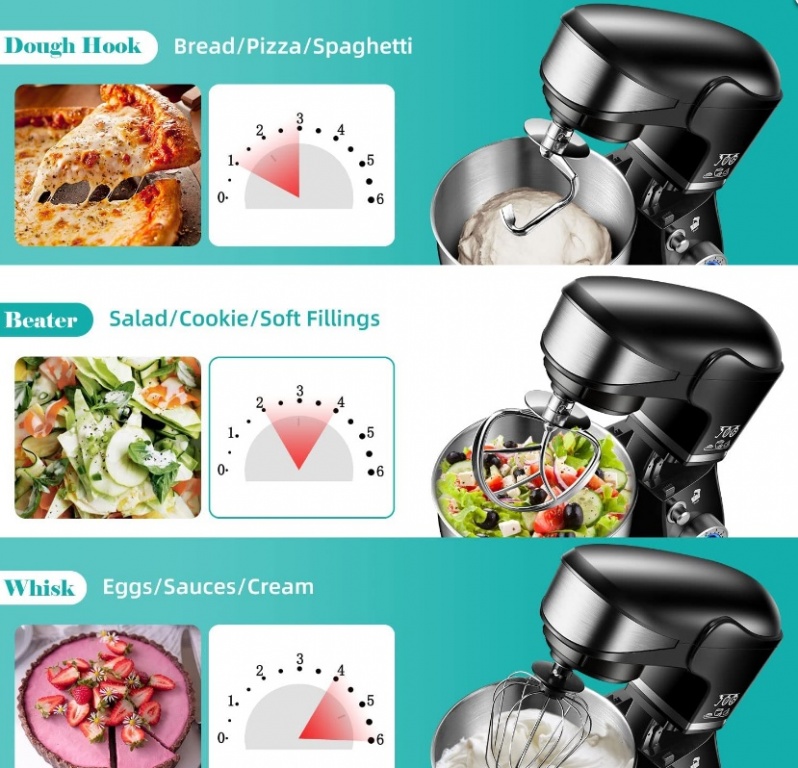 Planetārā maisīšanas darbība – Planetārā maisīšanas kustība nodrošina vienmērīgu sastāvdaļu sadalījumu, rotējot putotājus ap bļodu un vienlaikus tos griežot. Tas novērš nesajauktu sastāvdaļu pielipšanu pie malām, novēršot nepieciešamību pēc manuālas kasīšanas. Iekļauti daudzpusīgi uzgaļi – Šim virtuves kombainam ir mīklas āķis, putotājs, putotājs un skrāpis, kas sniedz vairākas iespējas dažādām gatavošanas vajadzībām. Mīklas āķis ir ideāli piemērots smagu mīklu, piemēram, maizes vai picas, mīcīšanai, putotājs ir ideāli piemērots krējuma vai olu baltumu putošanai, un putotājs nodrošina vienmērīgu mīklas un mērču sajaukšanu.