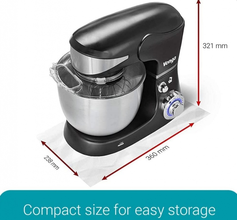 Izturīga un moderna konstrukcija – Ar izturīgu plastmasas ārpusi apvienojumā ar augstas kvalitātes nerūsējošā tērauda maisīšanas bļodu šis stacionārais mikseris ir radīts izturībai un ilgstošai darbībai. Elegantais un modernais dizains padara to par stilīgu papildinājumu jebkurai virtuvei.