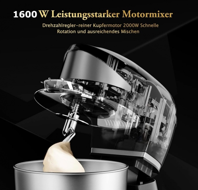 Jaudīgs 1600 W motors – Augstas veiktspējas 1600 vatu motors nodrošina izcilu jaudu, atvieglojot sastāvdaļu sajaukšanu, mīcīšanu un putošanu. Neatkarīgi no tā, vai gatavojat kūkas mīklu, cepumu mīklu vai smagu maizes mīklu, šis mikseris nodrošina vienmērīgus un vienmērīgus rezultātus ar minimālu piepūli.