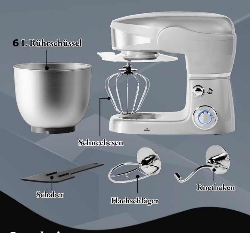 Izturīga un moderna konstrukcija – Ar izturīgu plastmasas ārpusi apvienojumā ar augstas kvalitātes nerūsējošā tērauda maisīšanas bļodu šis stacionārais mikseris ir radīts izturībai un ilgstošai darbībai. Elegantais un modernais dizains padara to par stilīgu papildinājumu jebkurai virtuvei.
