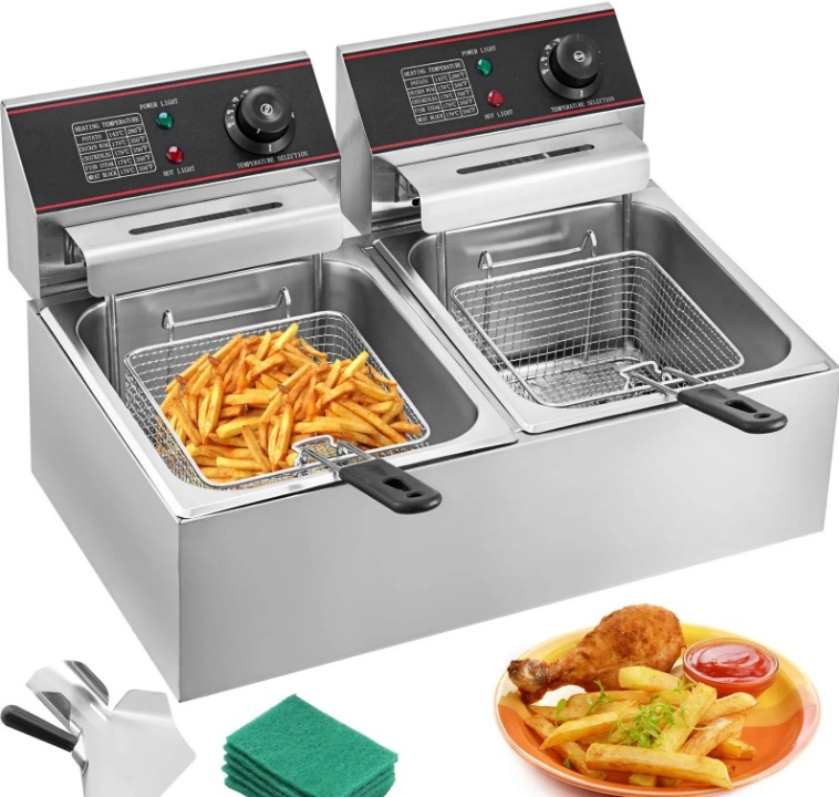 VEVOR 12 litru elektriskais fritieris 5000 W , divu grozu YB-82 , frī kartupeļi komerciālai lietošanai