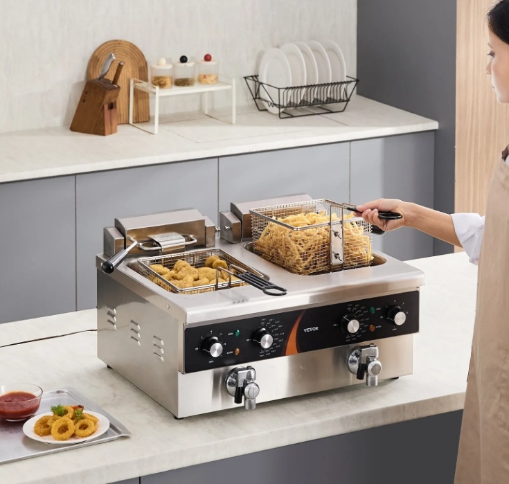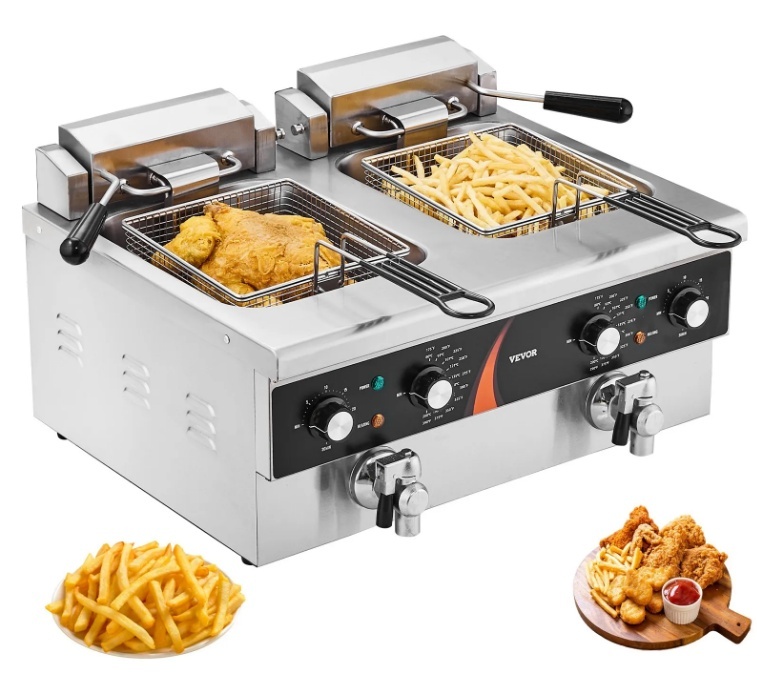 VEVOR komerciālais elektriskais fritieris , 3000 W , dubultā tvertne , 8,5 l