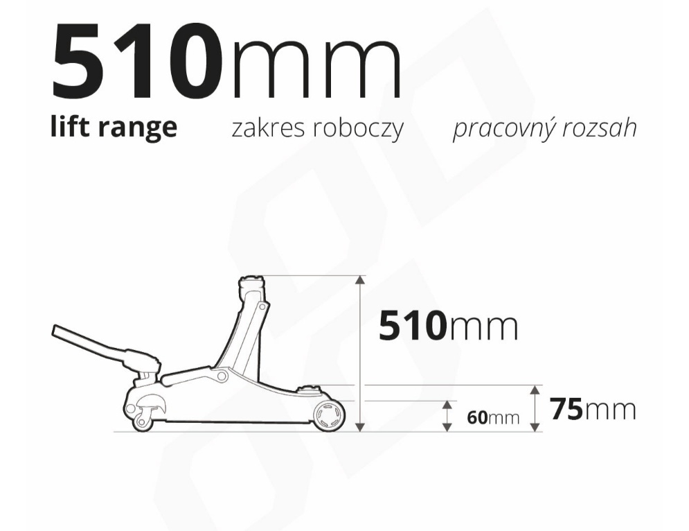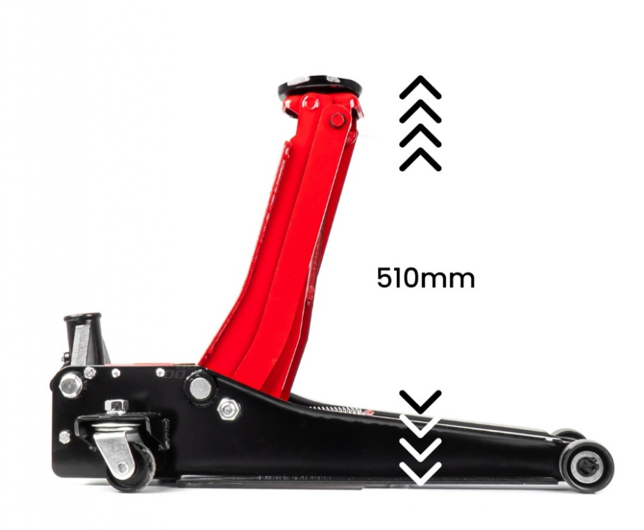Pacelšanas diapazons: 75-510 mm: Zema profila dizains ļauj tam strādāt pat ar transportlīdzekļiem ar zemu piekari.